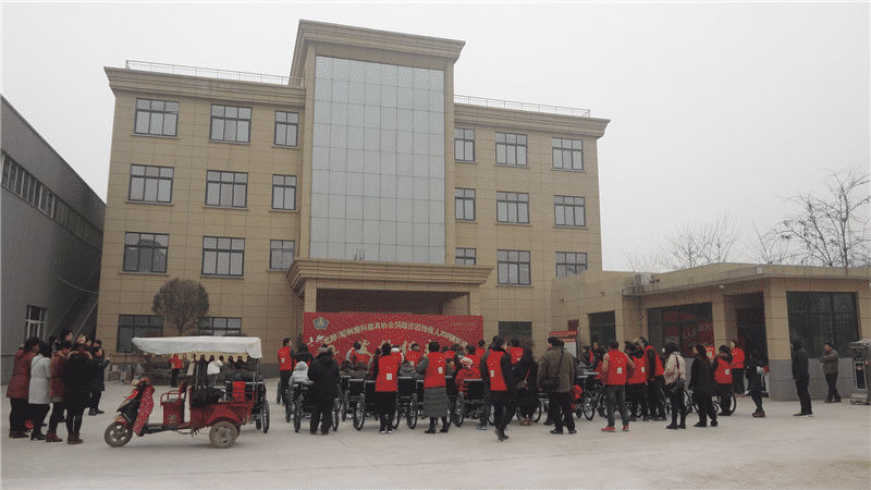 大愛無疆-金橋白鴿公司為武陟縣獻(xiàn)愛心 扶貧項(xiàng)目第 一 批捐獻(xiàn)200輛殘疾人車到位,下圖為獻(xiàn)車現(xiàn)場(chǎng)